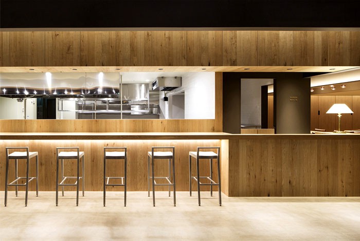 我們利用了現(xiàn)有建筑大跨度的特點,將固定墻體的運用做到最少,打造出只依靠燈光和吊頂來劃分的寬闊用餐空間。