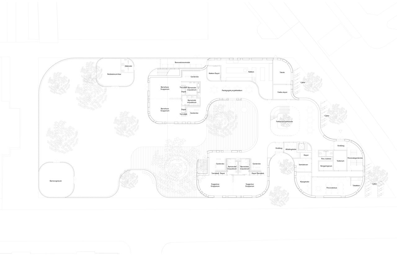 COBE想借此項目創建一個世界級的日間護理中心。一個兒童成長的最佳環境,可以激發兒童的學習能力和創造能力。坐落于哥本哈根一處主要由養老院和老年公寓所在的歷史悠久的地方,項目確保了歷史區域與新建筑的一致性。