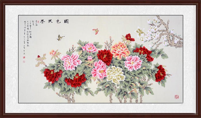 1:人們之所以喜歡牡丹,不僅僅是它那姹紫嫣紅的花色、雍容華貴的氣質(zhì),更在于它是集顏值、寓意、風(fēng)水于一身的中國傳統(tǒng)吉祥畫;