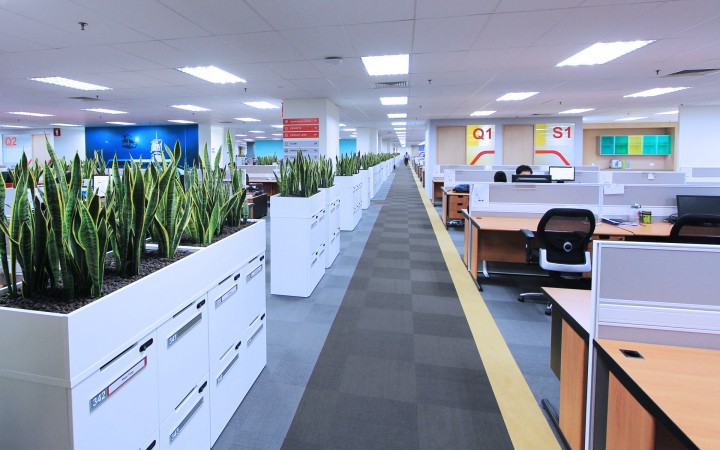 在我們對辦公室進行現代簡約風格裝修設計時,需要根據我們的設計風格搭配合適的辦公室裝飾以及辦公家具,這樣才能夠使得辦公空間的氛圍更加和諧,本案增加了彩色線條型設計更加突顯簡約大氣的裝修設計風格,整體空間顯得更加的流暢舒適,更加提高了員工的工作效率。